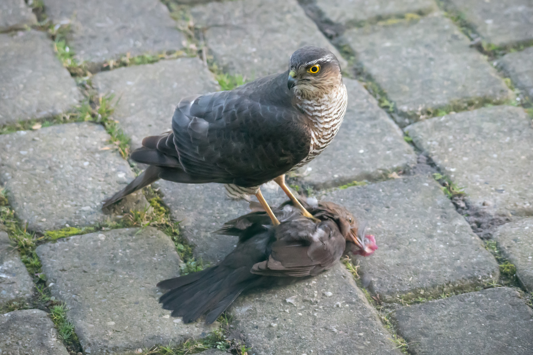 Spurvehøg på Solsort / Sparrowhawk on Blackbird (Assipiter nisus)