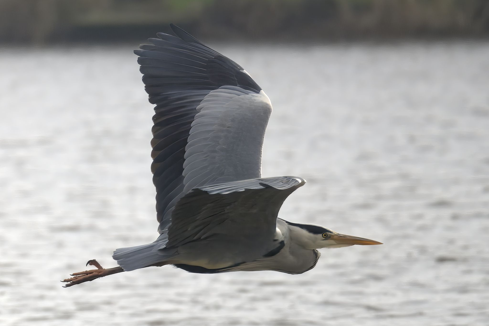 Fiskehejre i flugt / Grey heron in flight (Ardea cinerea)
