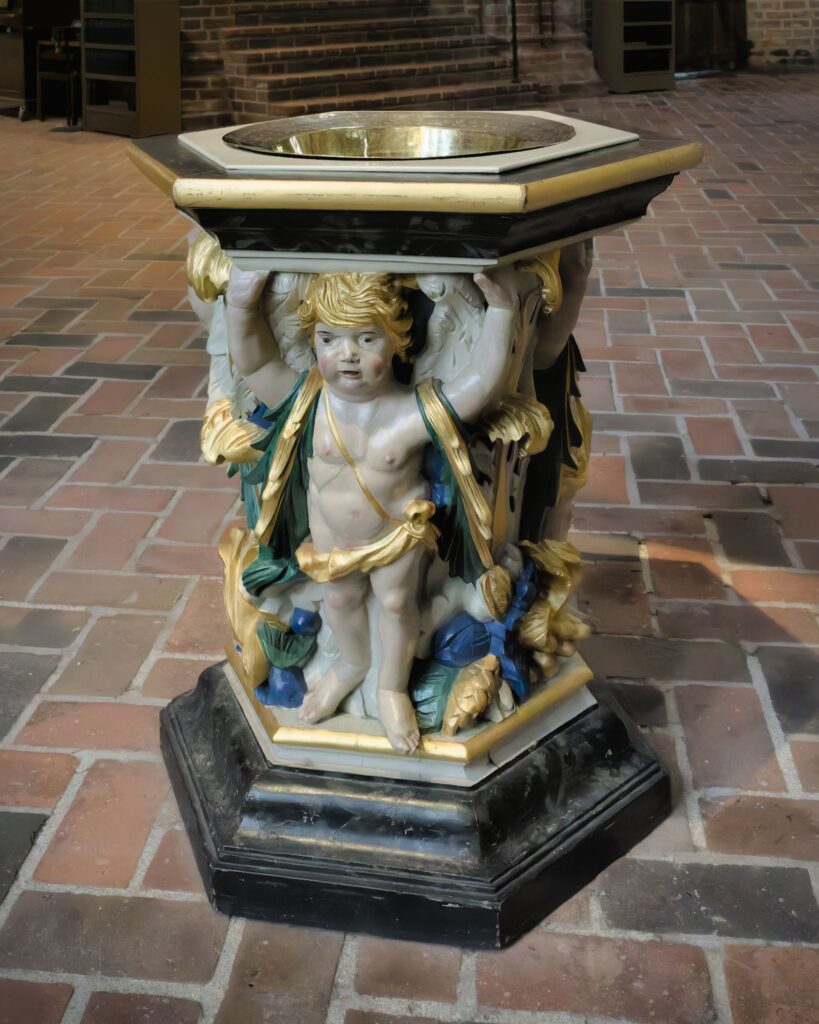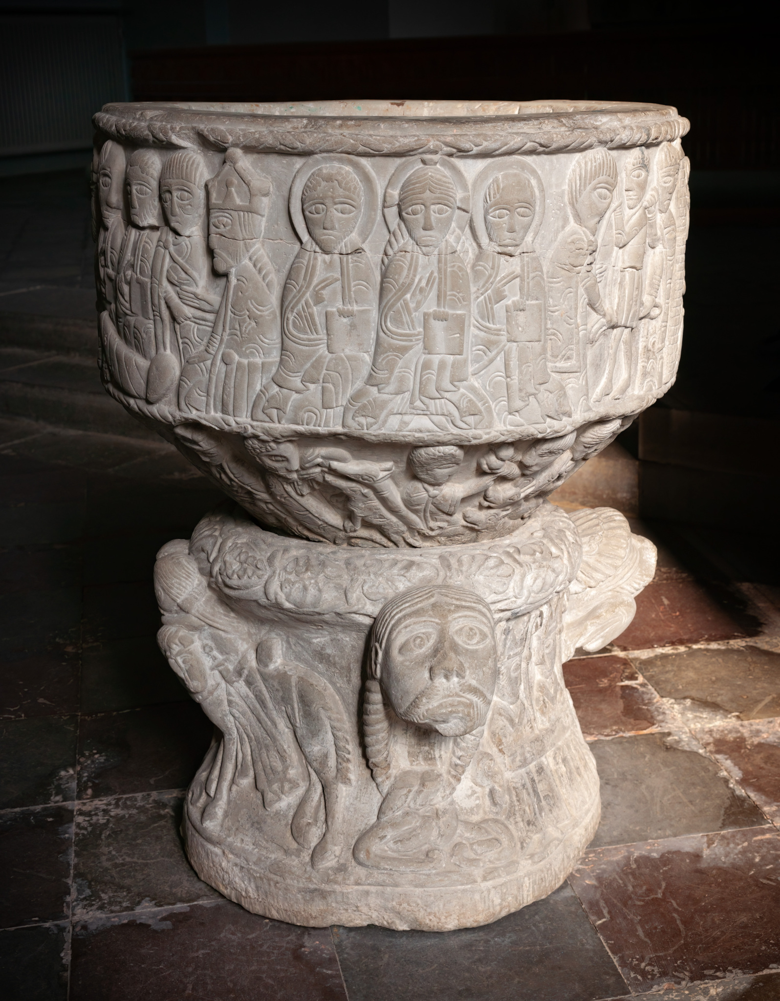 Døbefonten (nederste del) i Løgumkloster Kirke / The baptismal font (lower part) in Løgumkloster church