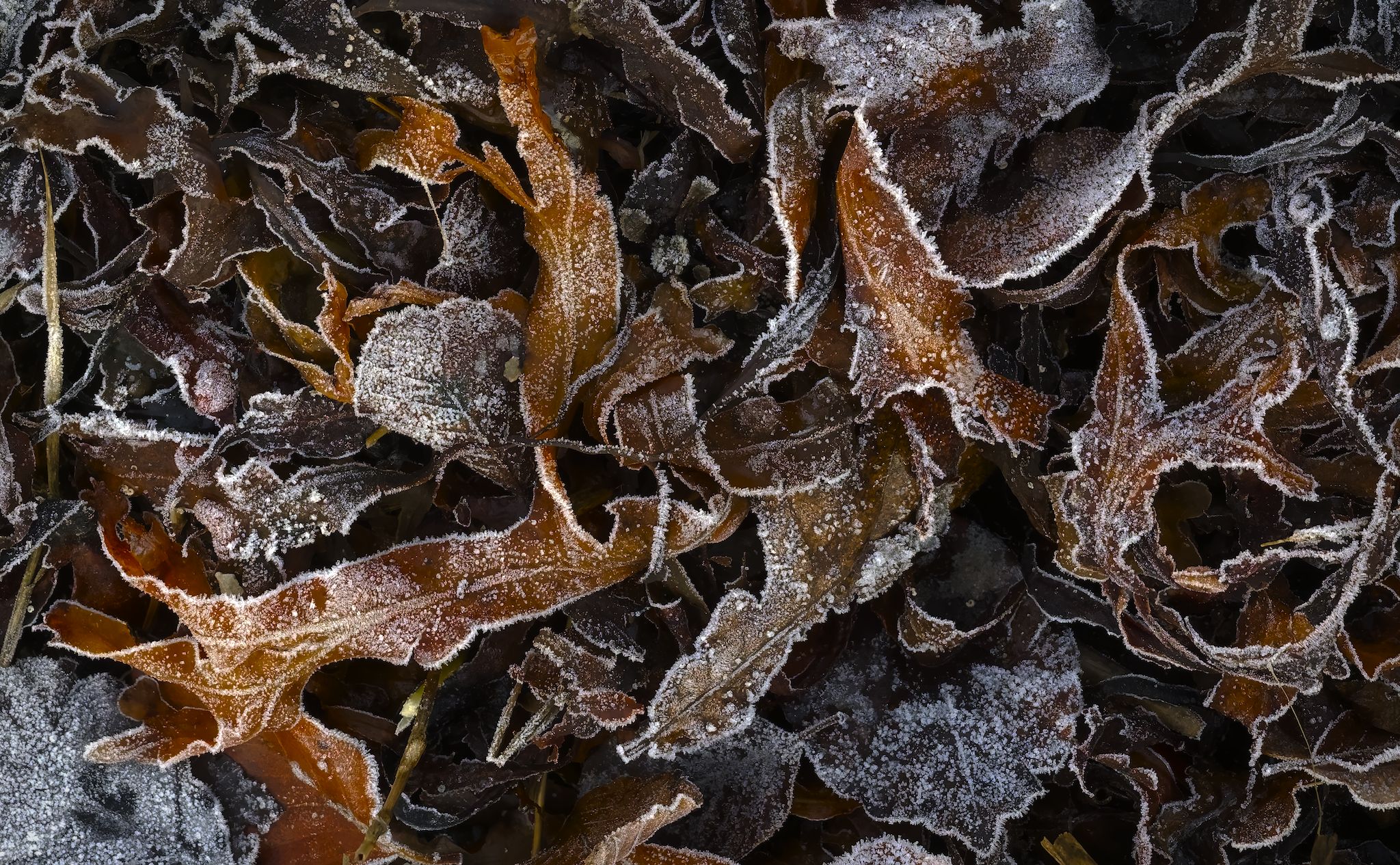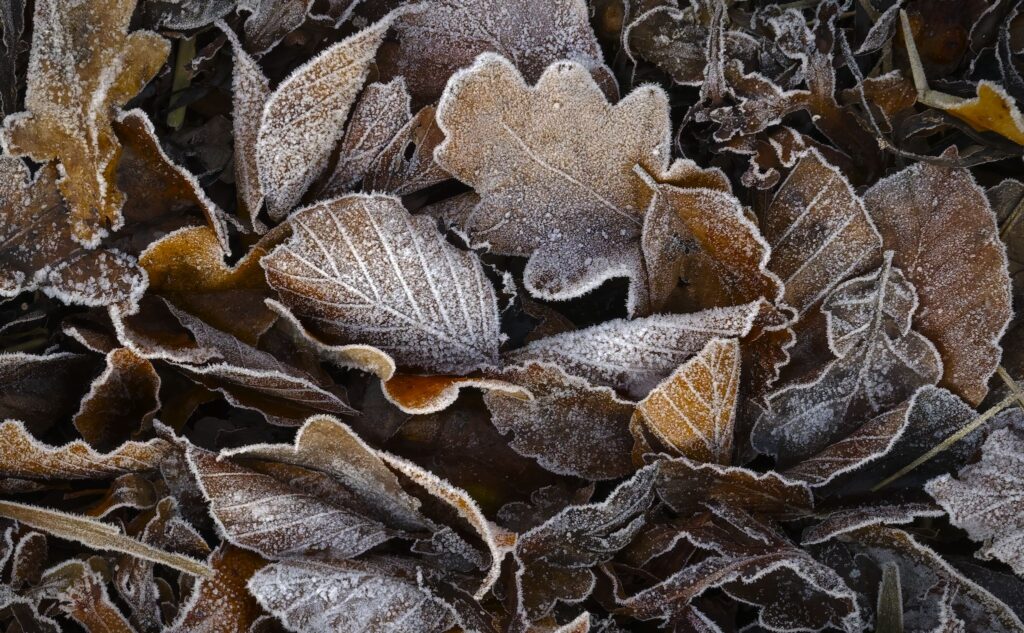 Rimfrost på blade og tang / Rimfrost on leaves and seaweed