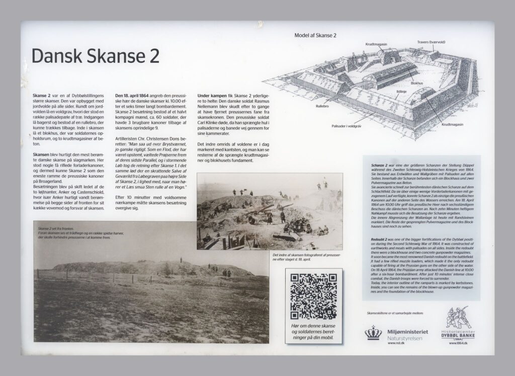 Beskrivelse af kampen om Dansk Skanse 2 / Description of the fighting for Danish Fortification 2