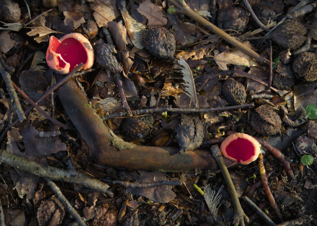 Krølhåret pragtbæger / Scarlet cup (Sarcoscypha austriaca)